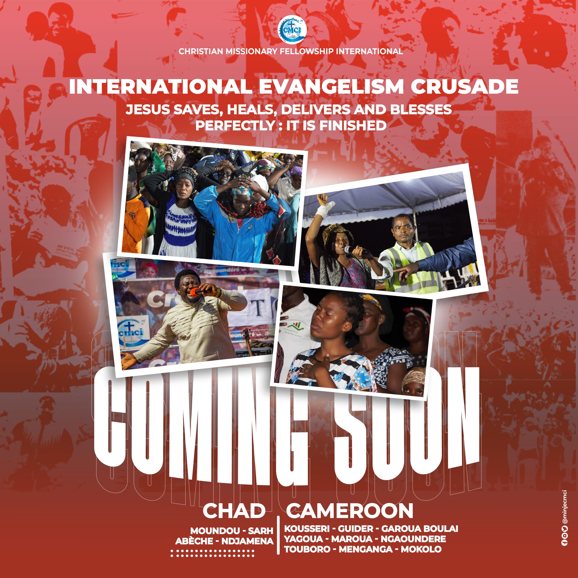 La Communauté Missionnaire Chrétienne Internationale organise une suite de croisades au Cameroun et au Tchad sous le thème : Jésus sauve, guérit, délivre et bénit parfaitement : Tout est accompli
