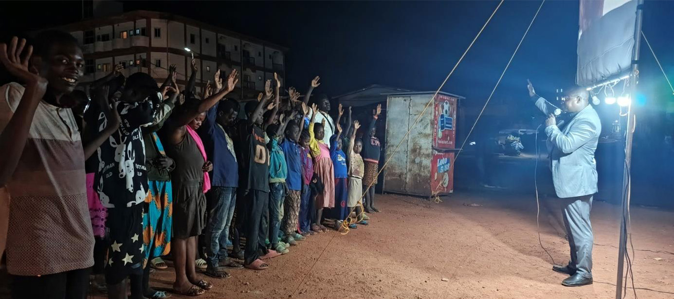 Nous avons projeté le film « Facing the Giant ». Juste au milieu du film, le groupe électrogène a arrêté de fonctionner contre toute attente. Nous avons essayé de tout faire. Mais nos efforts ne se sont soldés en rien de concret. Sans perdre courage, nous avons décidé de prêcher dans le noir, en utilisant l’éclairage du téléphone.