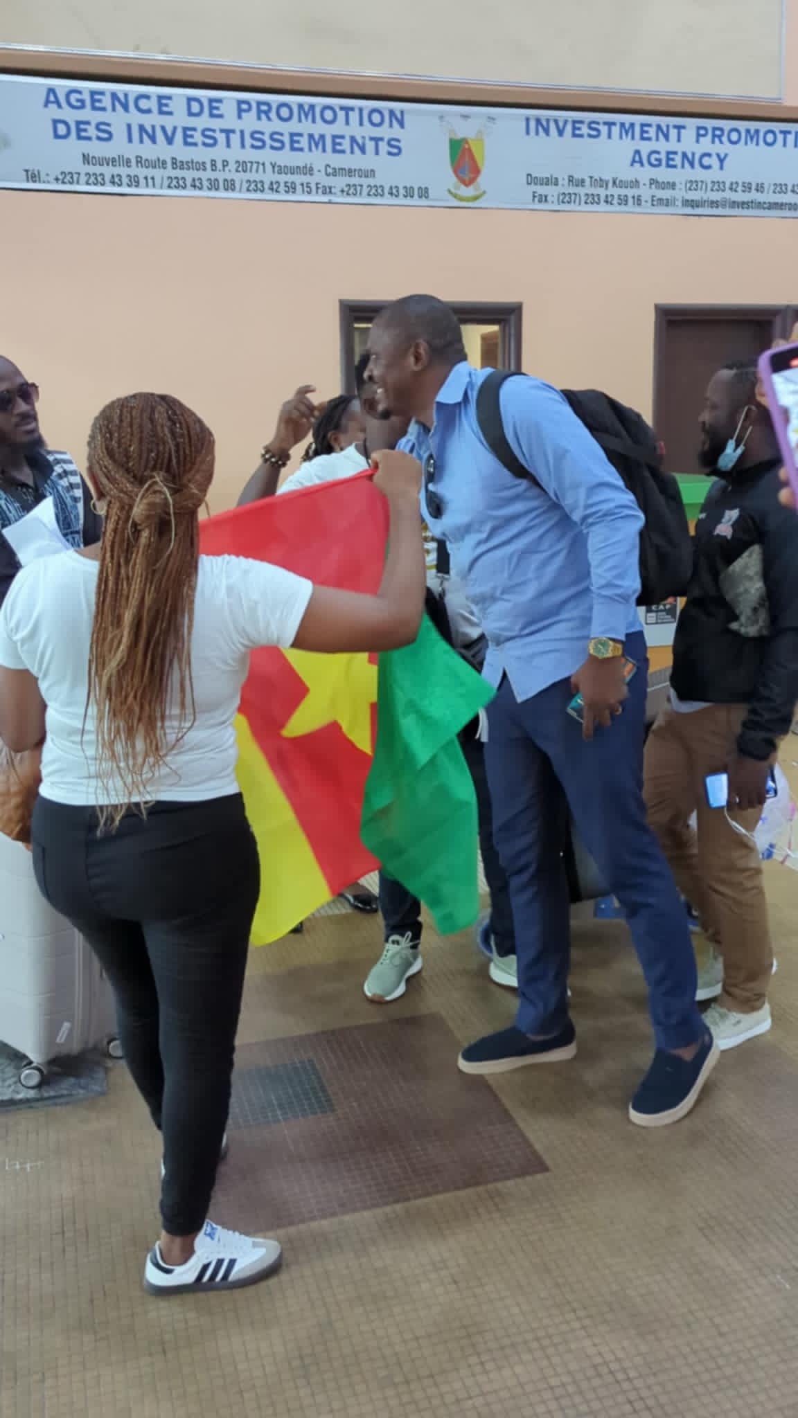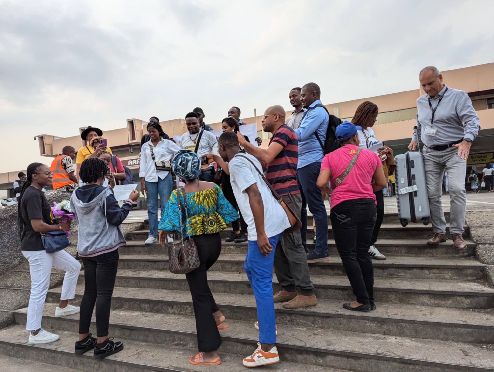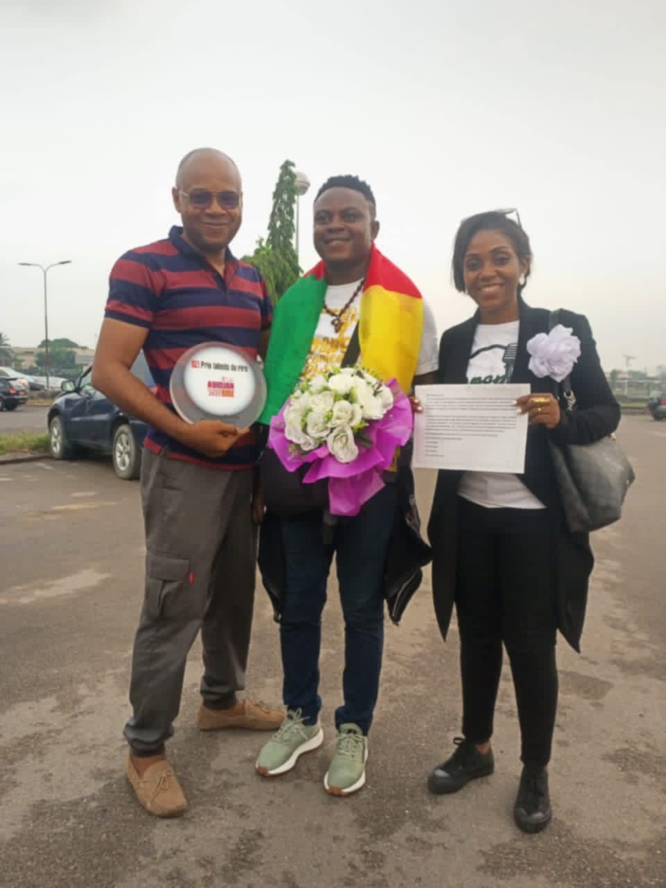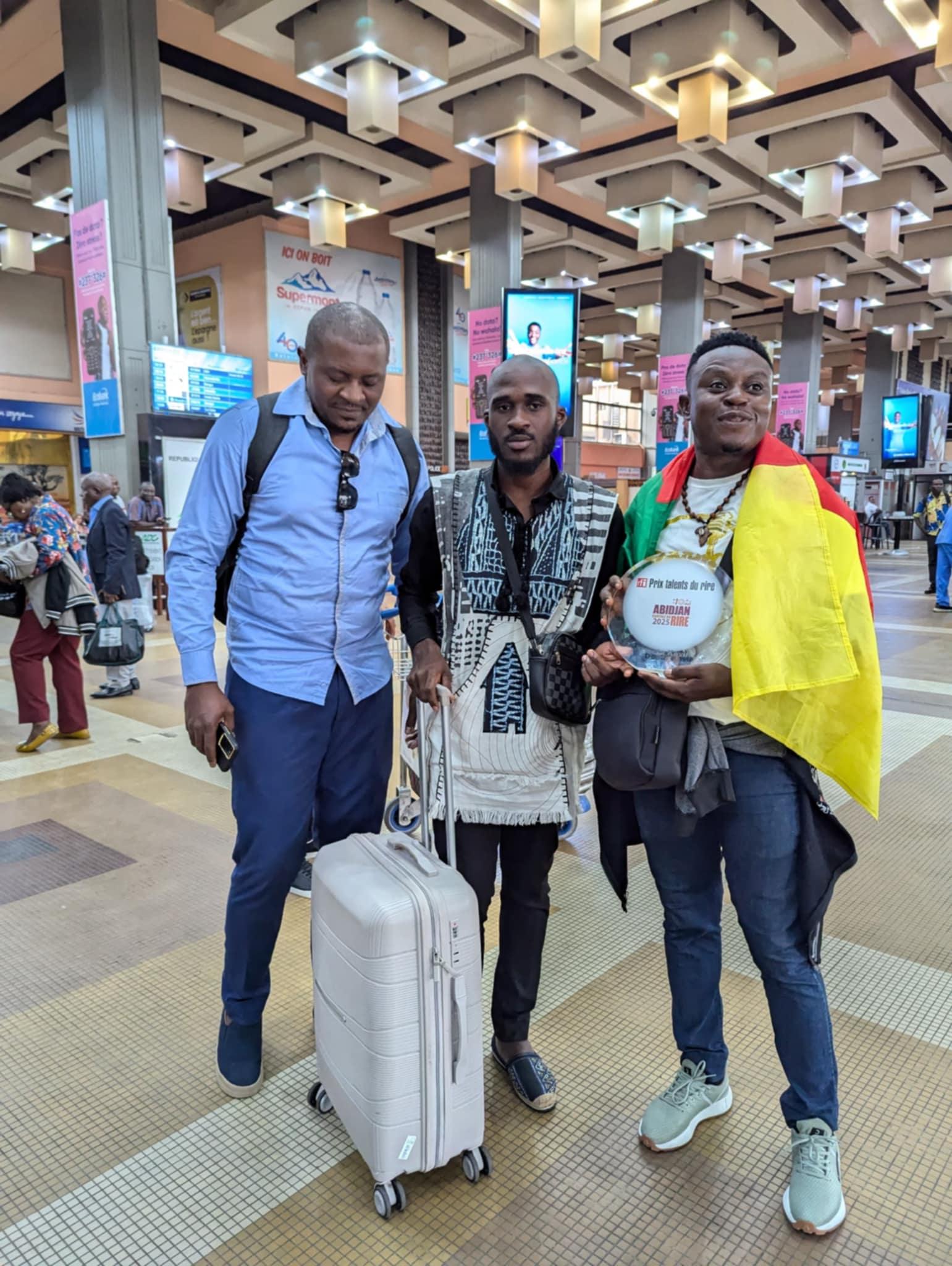 The gospel comedian, returning from Abidjan, for the event nicknamed "Capital of Laughter", landed around 7 a.m., visibly moved by the warmth of the welcome. When he got off the plane, a delegation including his team from the Gospel Comedy Club, the Fadiese Academy, representatives of “Mercredi en Montagne” and many fans were waiting for him. The festive atmosphere was enhanced by banners, flowers and t-shirts in the colors of the Gospel Comedy Club, creating an atmosphere which did not fail to attract the attention of other travelers.