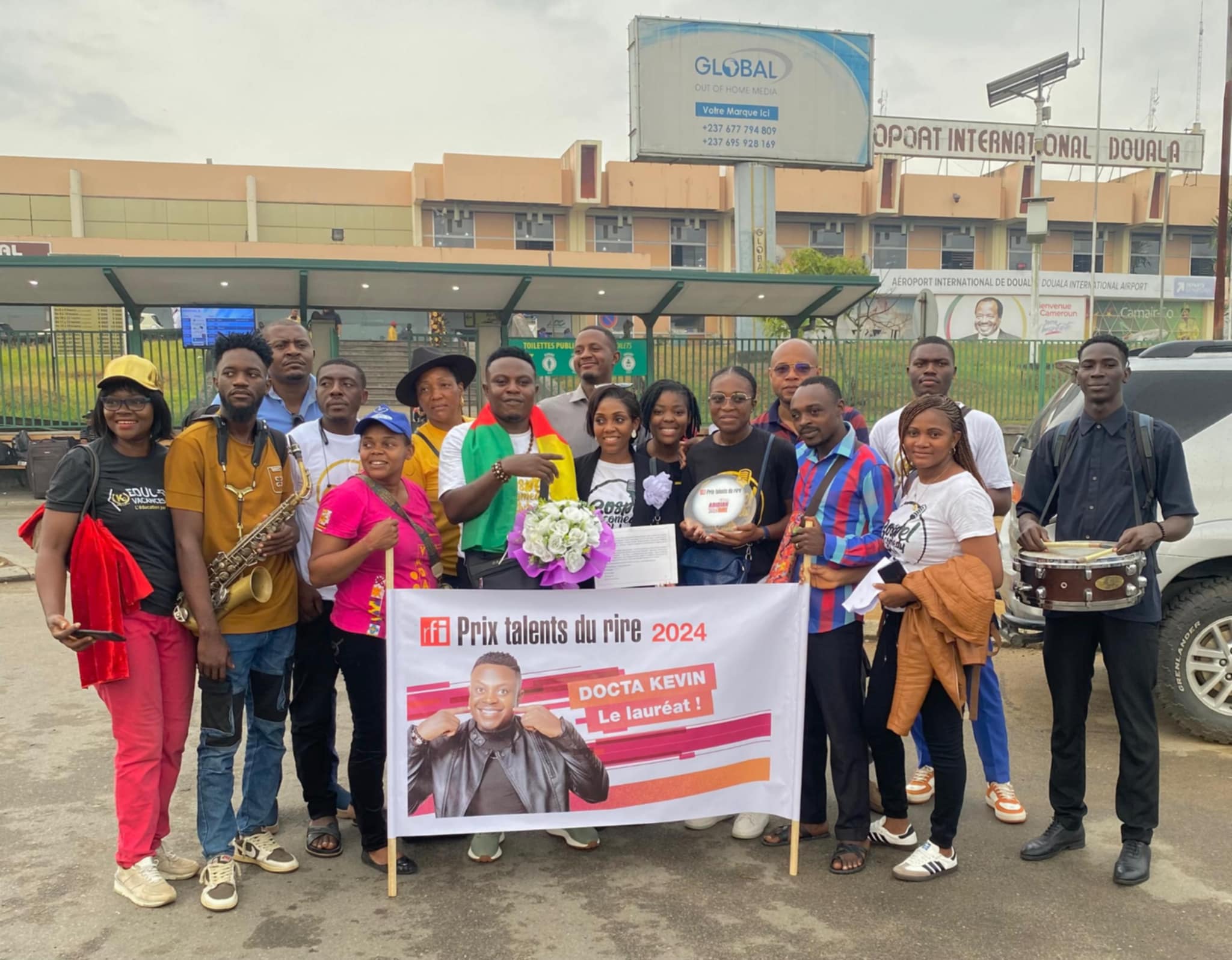 Welcomed triumphantly at Douala airport this Tuesday, February 25, 2025, Docta Kevin, recent winner of the prestigious RFI Talents du Rire Prize, was greeted by an enthusiastic crowd.