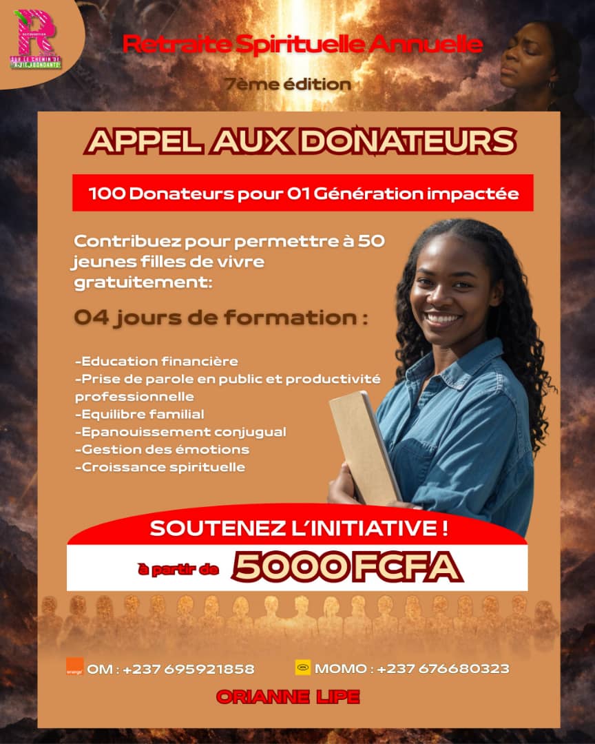 From March 12 to 15, 2026 in Okola, the RESTORATION Ministry is organizing the 7th edition of the Annual Spiritual Retreat (RSA), a powerful meeting dedicated to women who wish to reposition themselves and advance in the victory that God has reserved for them.
