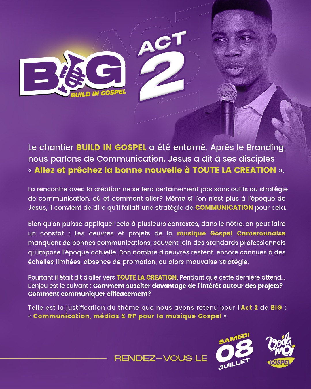This is the justification for the theme we have chosen for Act 2 of BIG: “Communication, media & PR for Gospel music”